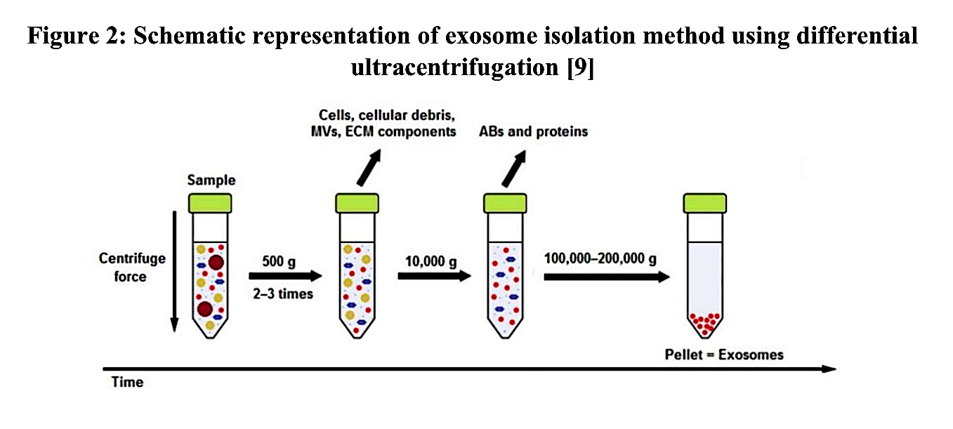 -Exosomes can be isolated from collecting conditioned media (supernatant) of cell cultures followed by serial centrifugations (300g for 10 min, 2,000g for 10 min and 10,000g for 30 min at 4 °C). The supernatant from the 10,000g centrifugation was ultracentrifuged at 100,000g for 70 min at 4 °C to collect the exosome-enriched fraction (pellet). The preferred isolation technique of exosomes derived from adult stem cell cultures found in AF is size-exclusion chromatography (qEV), which has generated higher yield of exosomes, lower protein contamination, lower sheer stress on EVs, and higher efficiency with approximately 15 minutes per preparation.
